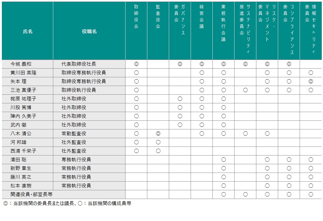 | 梶原 祐理子 (独立役員) | 梶原祐理子氏は、公共放送で培った社会課題等に対する高い見識及びガバナンスに対する豊富な経験を有しています。これらの経験や見識などを活かし、取締役会やガバナンス委員会において、客観的で広範かつ高度な視点から助言いただくことにより、コーポレート・ガバナンスの一層の強化が図れると判断しています。 | 公共放送で培った社会課題等に対する高い見識およびガバナンスに対する豊富な経験を活かし、取締役会等での事業及び経営全般に関する助言や、ガバナンス委員会での役員人事ならびに役員報酬等の審議を通じて、コーポレート・ガバナンスの一層の強化に貢献しました。 |