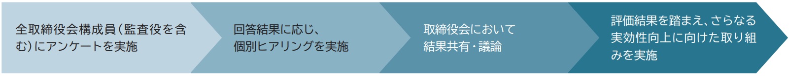 毎年、各取締役・監査役へのアンケートに基づき、取締役会の実効性について分析・評価を行い、取締役会の運営等の改善に活用しています。